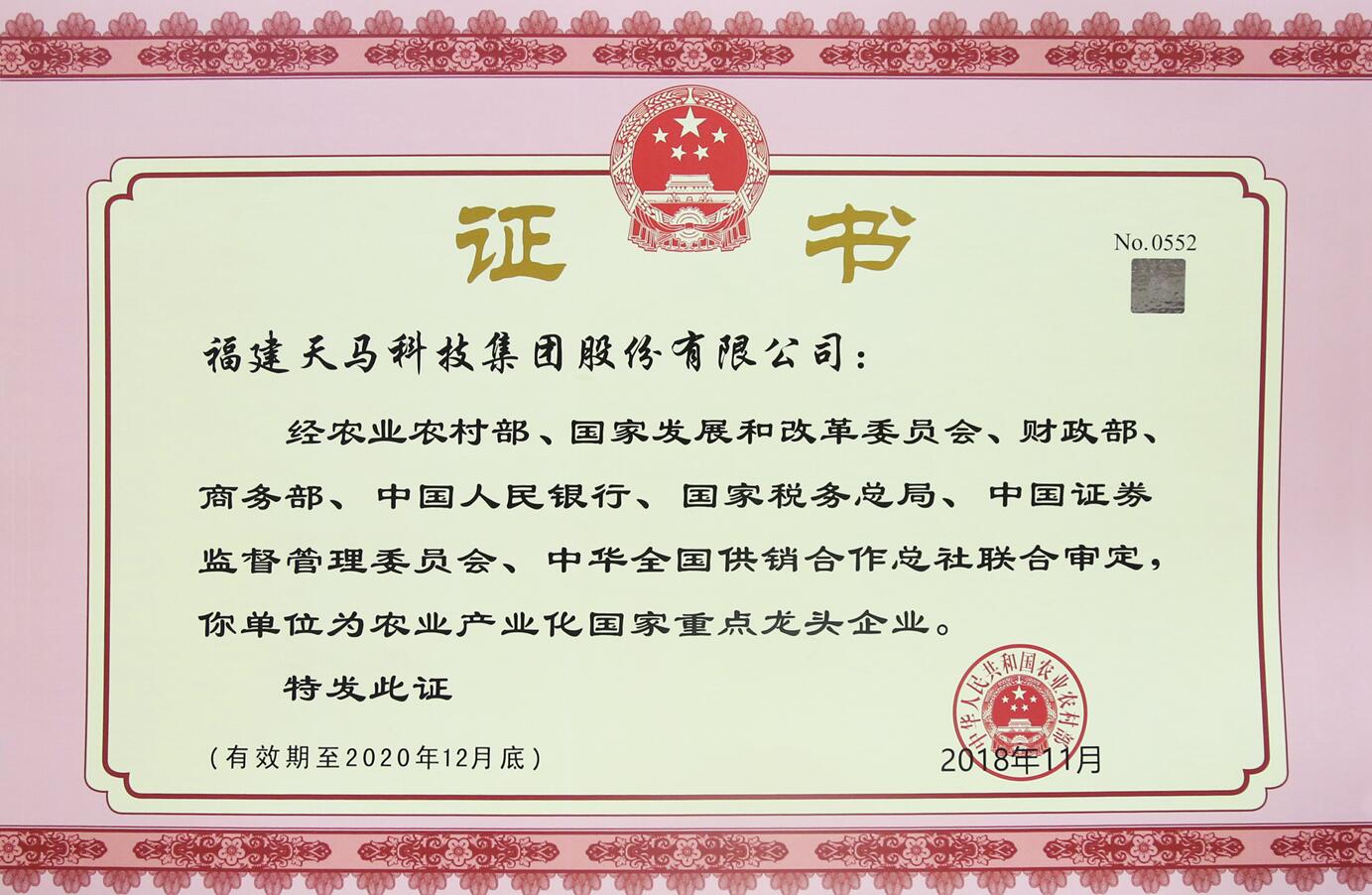 農(nóng)業(yè)產(chǎn)業(yè)化國家重點龍頭企業(yè)